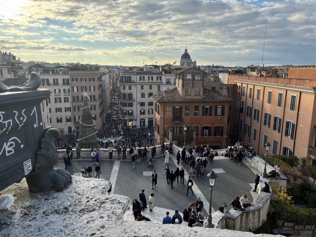 【ローマの休日】のスペイン広場:寒い中ジェラートを食べる人でいっぱい‼